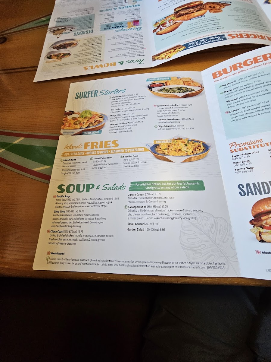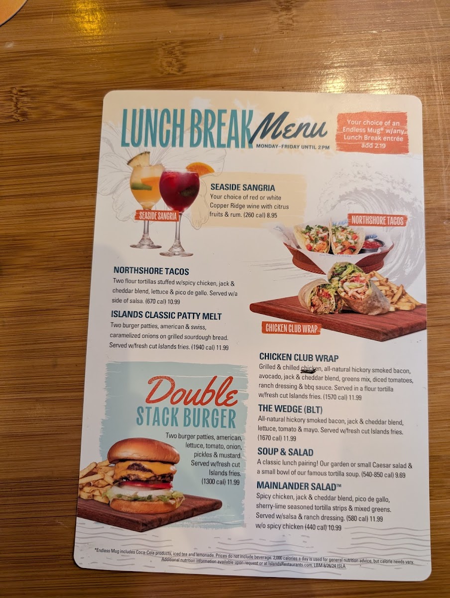 Two burger patties, american, lettuce, tomato, onion, pickles & mustard. Served with fresh cut Island fries.